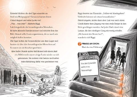 Patrick, Biggi und Luk suchen DICH! Bist du bereit für das Tiger-Team? Kannst du den Fall um den Fluch des Pharao lösen? Teste deine Detektivfähigkeiten mit dem Decoder! Ägypten, Pyramiden, Forschungsarbeiten und ein frisch geöffnetes Pharaonengrab? Da sind seltsame und unerklärliche Ereignisse nicht weit. Und du bist mittendrin. Ein grauenvoller Fluch hält alle in seinem Bann. Plötzlich wachen die Tiger im Alten Ägypten auf! Sie brauchen dringend deine Hilfe, um den Fluch aufzuheben. Ermittle und hilf mit, die Machenschaften aufzudecken. Knifflige Rätsel warten nach jedem Kapitel auf dich. Mit dem Decoder kannst du die Lösung überprüfen und erfahren, ob du richtig liegst.
