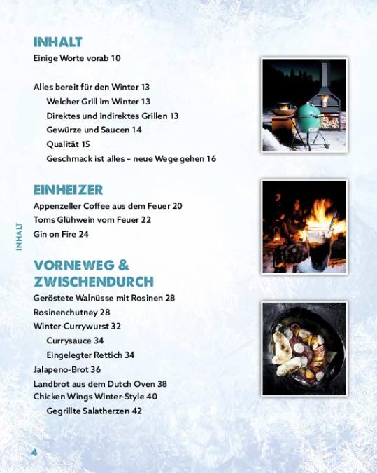Minusgrade sind längst kein Hinderungsgrund mehr, den Grill anzuheizen. Und weil der Gaumen im Winter gerne mal mit anderen Aromen und Genüssen verwöhnt wird als im Sommer, liegt kaum etwas näher als eine Sammlung winterlicher Grillrezepte mit atmosphärischen Winterfotos. Mit Gerichten wie Skrei mit knusprigem Grünkohl, Käsefondue aus dem Dutch-Oven, Chicken Wings Winter-Style oder Lammracks mit geräuchertem Blumenkohl und Whisky-Zwiebeln kann der Startschuss für die Wintergrillsaison gar nicht früh genug fallen. Tom Heinzle verrät außerdem die wichtigsten Expertentipps und was man beim Wintergrillen beachten oder vermeiden sollte.
