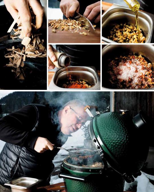 Der frisch gefallene Schnee glitzert in der Sonne, die kalte Luft färbt die Wangen rot und lässt den Atem dampfen – kurz: ein wunderschöner Wintertag! Perfekt, um den Grill anzuheizen, die kalten Hände an der Glut und einem heißen Punsch zu wärmen und sich voll Vorfreude an die Zubereitung winterlicher Aromen zu begeben. Wie Panettone im Speckmantel, Rehrücken in Glühweinsauce oder der ultimative Winterburger auch dann stets perfekt gelingen, wenn Kälte und Wind der Glut zusetzen, zeigt Wintergrill-Pionier Tom Heinzle in seinem neuesten Meisterwerk.