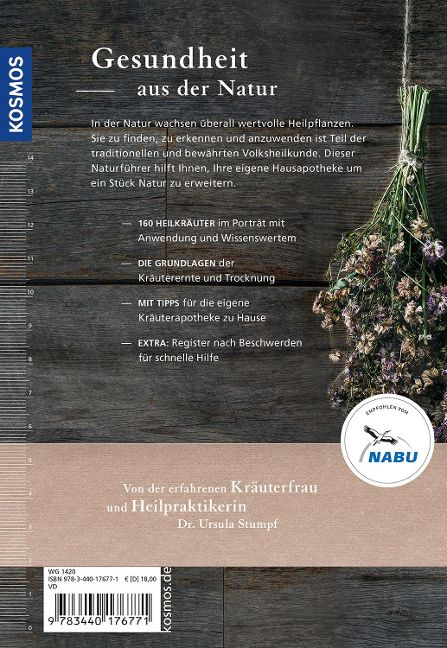 Acker-Schachtelhalm stärkt das Gedächtnis, Gänsefingerkraut lindert Krämpfe und der Echte Lein versorgt unseren Körper mit essentiellen Fettsäuren. Unsere heimischen Heilkräuter fördern die Gesundheit, helfen bei Beschwerden und spenden Lebenskraft. Dieser bewährte Ratgeber stellt die 160 wichtigsten Kräuter und Wildpflanzen ausführlich vor und beschreibt ihre Bedeutung in der Pflanzenheilkunde. Zahlreiche Rezepte zeigen, wie man das Kräuterwissen ganz einfach zu Hause anwendet. Eine wertvolle Bereicherung für jede Hausapotheke.