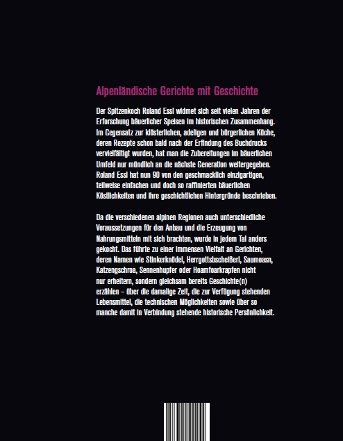 Und in jedem Tal wurde anders gekocht, weil die verschiedenen alpinen Regionen auch unterschiedliche Voraussetzungen für den Anbau und die Erzeugung von Nahrungsmitteln mit sich brachten. Das führte aber umgekehrt zu einer immensen Vielfalt an Gerichten, deren Namen wie etwa Stinkerknödel, Herrgottsbscheisserl, Saumoasn, Katzengschroa, Sennenhupfer oder Hoamfoarkrapfen nicht nur erheitern, sondern gleichsam bereits Geschichte(n) erzählen – über die damalige Zeit, die zur Verfügung stehenden Lebensmittel und technischen Möglichkeiten sowie über so manche damit in Verbindung stehende historische Persönlichkeit wie Anna von Österreich, Josef Wenzel Radetzky, Giuseppe Cipriani, Georg Lahner, Ignatz Mautner von Markhof, Martin Luther oder auch Karl den Großen.