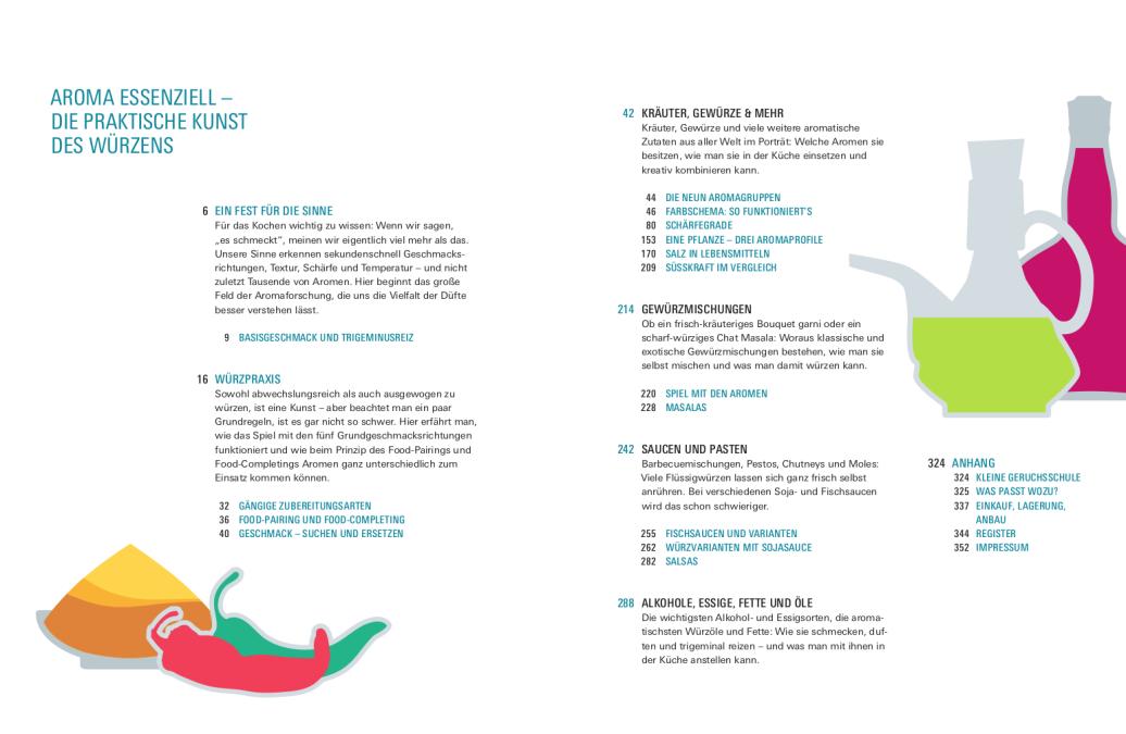 Gewürze machen aus einem guten Essen erst die perfekte Gaumenfreude. Die gelungene Kombination von Aromen intensiviert den Geschmack und zaubert feine Nuancen. Wie man richtig würzt und worauf Sie achten müssen für ein optimales Zusammenspiel der Gewürze, haben die zwei Experten dieses Ratgebers bereits gezeigt: Polymerforscher und Gastrosoph Professor Dr. Thomas A. Vilgis und der erfolgreiche Food Editor Thomas A. Vierich haben mit ihrem außergewöhnlichen Nachschlagewerk „Aroma – Die Kunst des Würzens“ bereits ein Standardwerk geschrieben, an dem kein Gourmet mehr vorbeikommt. Dort erfahren Sie alles von 400 Kräutern, Gewürzen, Pasten, Essigen und Ölen über Food-Pairing bis hin zu Food-Completing. Für alle, die sich schnelles und elegantes Würzen auch für das tägliche Kochen wünschen, gibt es jetzt „Aroma essenziell“: konzentriertes kulinarisches Wissen und noch mehr Vielfalt beim Kochen. Dieses bildkräftige Buch zeigt unkompliziert, welche Geschmacksvarianten harmonieren. Es erklärt, was Gewürze und deren Geschmacksentfaltung ausmachen, zeigt die ideale Temperatur für die Aromenentwicklung, beschreibt die Eigenschaften der Gewürze für noch mehr Kombinatorik und präsentiert die passenden Gerichte. Übersichtlich, kompakt, mit den essenziellen Prinzipien auf einen Blick. So wird Ihnen das richtige Würzen noch leichter gemacht. Anschauliche Geschmacksdiagramme bieten unbegrenzte Inspirationen und regen zum Experimentieren an. Ein einzigartiges Farbsystem führt durch die Komplexität der vielen Gewürze und das eigene Ausprobieren kinderleicht zum sicheren Erfolg. Immer griffbereit neben dem Herd bringt dieser Koch-Coach auch das einfachste Gericht zu überraschend neuer Entfaltung. Genießen Sie ungeahnte Sinneserlebnisse und tauchen Sie ein in die wunderbare Welt der Gewürze!