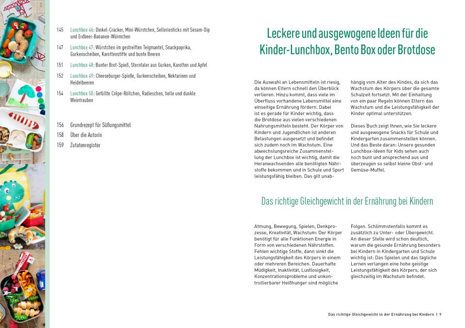 Sie möchten Ihrem Kind für den Kindergarten oder die Schule eine abwechslungsreiche Verpflegung mitgeben, aber Ihnen fehlt die Inspiration? Dieses Buch zeigt Ihnen, wie Sie gesunde und vollwertige Leckereien ganz einfach selbst zubereiten. Und das Beste daran: Die vielseitigen Lunchbox-Ideen für Kids sehen auch noch farbenfroh und ansprechend aus und überzeugen so selbst kleine Obst- und Gemüse-Muffel. Mit den über 50 kreativen Anregungen und Vorschlägen zum Anrichten sind das langweilige Pausenbrot und der ungesunde Snack vom Schulkiosk Geschichte.