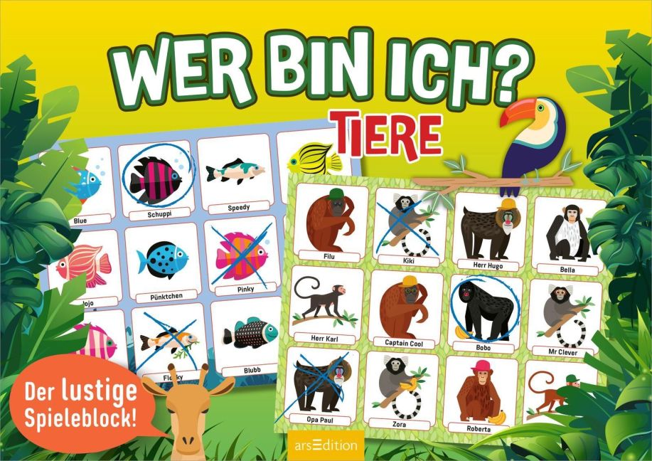 Der witzige Spieleklassiker im Block Habe ich braunes Fell? Trage ich eine Mütze? Bin ich ein Dackel? In diesem Spieleblock sorgen über 80 Vorlagen für jede Menge Ratespaß! Das Spielprinzip ist altbekannt: Durch gezielte Ja-Nein-Fragen und Ausschlussprinzip lässt sich herausfinden, welches Tier man verkörpert.- Spielspaß für Jung und Alt: "Wer bin ich?" ist ein perfektes Familienspiel- Fördert Sprachkompetenz und logisches Denken:Das Spiel animiert Kinder dazu, gezielte Fragen zu stellen, die sich mit "Ja" oder "Nein" beantworten lassen. Gleichzeitig lernen sie, logische Schlüsse aus ihren Fragen zu ziehen- Lachen garantiert: Die lustigen Illustrationen sorgen für jede Menge Spaß - Für zu Hause und unterwegs: Mit diesem Block kommt keine Langeweile mehr auf, ob im Auto oder im Kinderzimmer Spaßige Beschäftigung