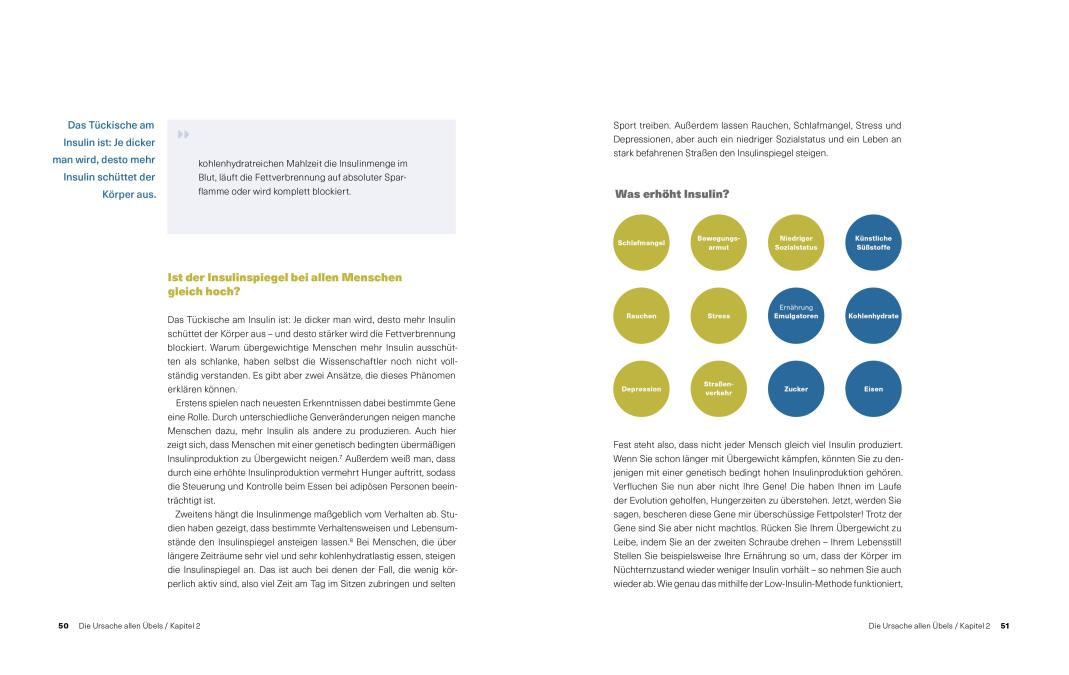 Diese einfache Erkenntnis rückt weltweit das Wissen über Diäten und Fehlernährungen in ein anderes Licht. Wieso aber der Insulinspiegel erhöht ist und wie man ihn selbst gezielt senkt: Das ist das spannende Thema dieses Buches.