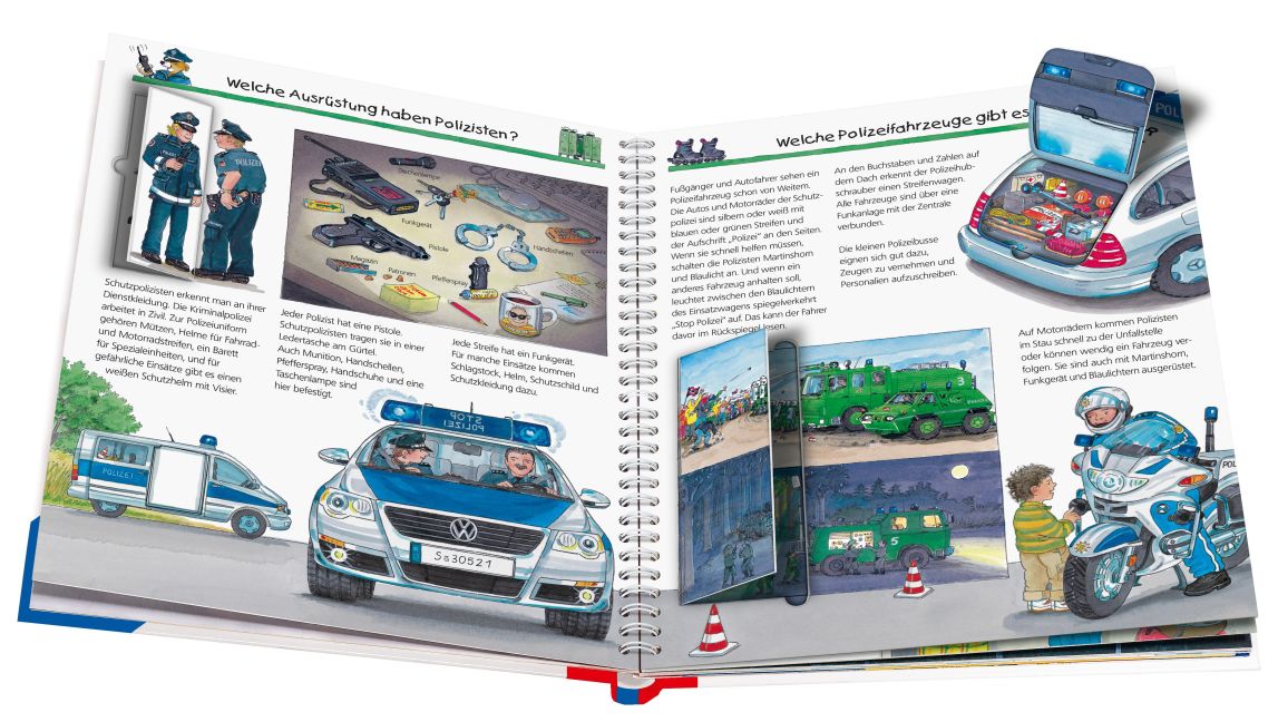 Tatütata, die Polizei ist da! Ob Ladendiebstahl, Einbruch oder Verkehrsunfall - die Frauen und Männer in Blau sind stets einsatzbereit und schnell vor Ort. Das Buch stellt ihre unterschiedlichen Aufgabengebiete, die Ausrüstung und Polizeifahrzeuge vor. Die Kinder erfahren, wie man Polizist wird und was Polizeihunde alles können. Aber auch die Kriminalpolizei, Spurensicherung und verschiedene Spezialeinheiten werden unter die Lupe genommen.