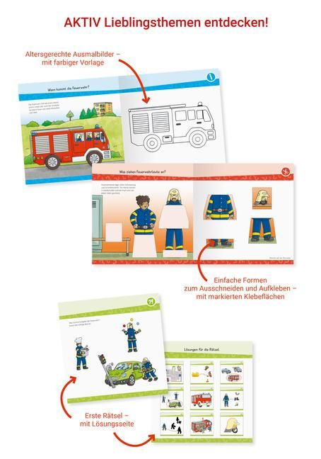 Tatütata - hier kommt ein erster Kreativblock zur Feuerwehr! Was brauchen Feuerwehrleute für ihren Einsatz? Wie löschen sie ein Feuer? Und mit welchen Fahrzeugen sind sie unterwegs? Spielerisch beantwortet dieser Block erste Fragen rund um die Feuerwehr und lädt zum Kreativwerden ein: Kinder bekleben Einsatzkräfte mit ihrer Schutzkleidung, malen das Löschgruppenfahrzeug aus oder rätseln, was in den Rüstwagen gehört. Mit zahlreichen Aktivitäten tauchen Kinder in ihr Lieblingsthema ein.