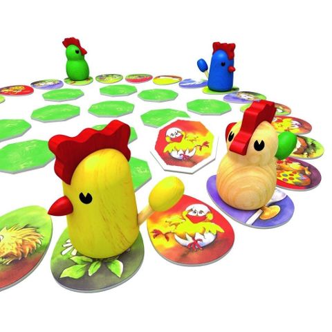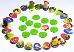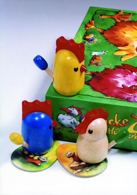 Zicke Zacke Hühnerkacke ist das preisgekrönte Gedächtnisspiel rund um den Hühnerhof. Ziel des Spiels ist es, sich mit den Federn der anderen Hühner zu schmücken. Man bewegt sich vorwärts, indem man das vor sich liegende Motiv im Hühnerhof in der Mitte aufdeckt. Gelingt das, darf man auf das nächste Plättchen springen und ist gleich wieder am Zug. Überholt ein Huhn ein anderes Huhn, darf es diesem alle Federn ausrupfen und sich selbst anstecken. Die rasante Hühnergedächtnisrallye ist ein Klassiker, der nicht nur Kinder hellauf begeistert. Für 2-4 Spieler im Alter ab 4 Jahren.