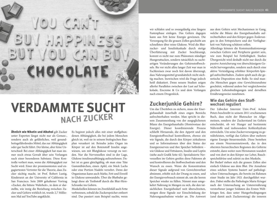 Raus aus der ZuckerfalleDas aktualisierte Standardwerk zur Zuckerentwöhnung: Ernährungspsychologen zählen Süßspeisen zu den konfliktreichsten Lebensmitteln im Alltag. Die Sucht auf Zucker wird dadurch ausgelöst, dass die Substanz im Gehirn das Belohnungssystem aktiviert: Durch die Ausschüttung des Botenstoffs Dopamin wird der süße Geschmack positiv abgespeichert und man verlangt immer wieder danach. Fazit: Das Widerstehen können ist keine Frage des Willens, sondern eine zivilisatorische Herausforderung. Der hohe Zuckerkonsum hat für unsere Gesundheit dramatische Folgen, denn viele Zivilisationskrankheiten werden durch eine zuckerhaltige Ernährung begünstigt. Die Lösung: ein vier-Schritte-Entwöhnungsprogramm um den Zuckerkonsum zu kontrollieren und auf ein gesundes Maß zu reduzieren. Das Buch gibt detaillierte Einblicke in die Wirkungsweise von Zucker im Stoffwechsel und zeigt, wie Zucker uns krank und süchtig macht und wie man mit genussvollen Rezepten aus der Zuckerfalle aussteigen kann.